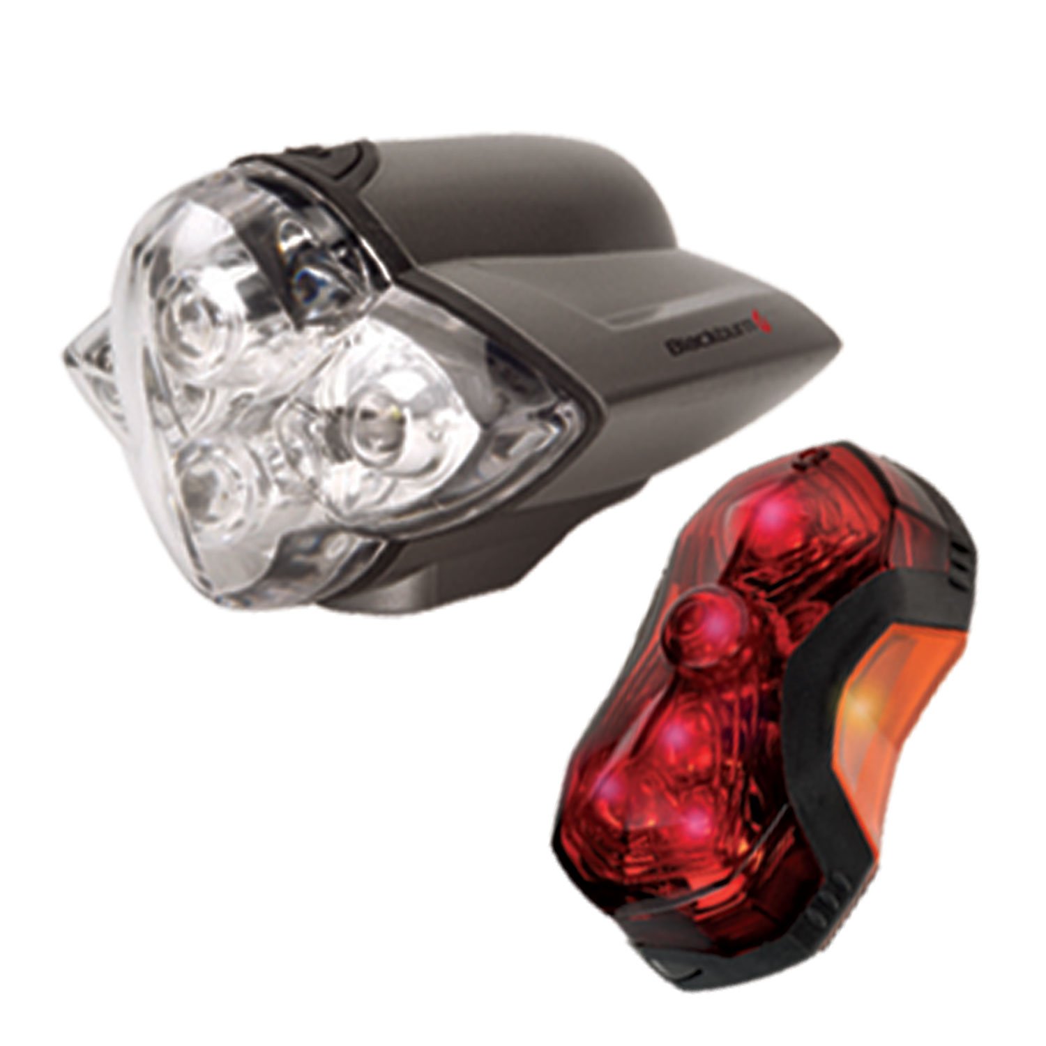 Image: The Blackburn Quadrant front light and Mars 3.0 rear light combo. The front light is larger, typically mounted on handlebars, while the smaller rear light is designed for seat post mounting.