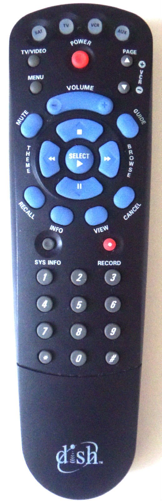 The DISH 123479171-AA remote control features a standard layout for intuitive operation. Below are common button functions: