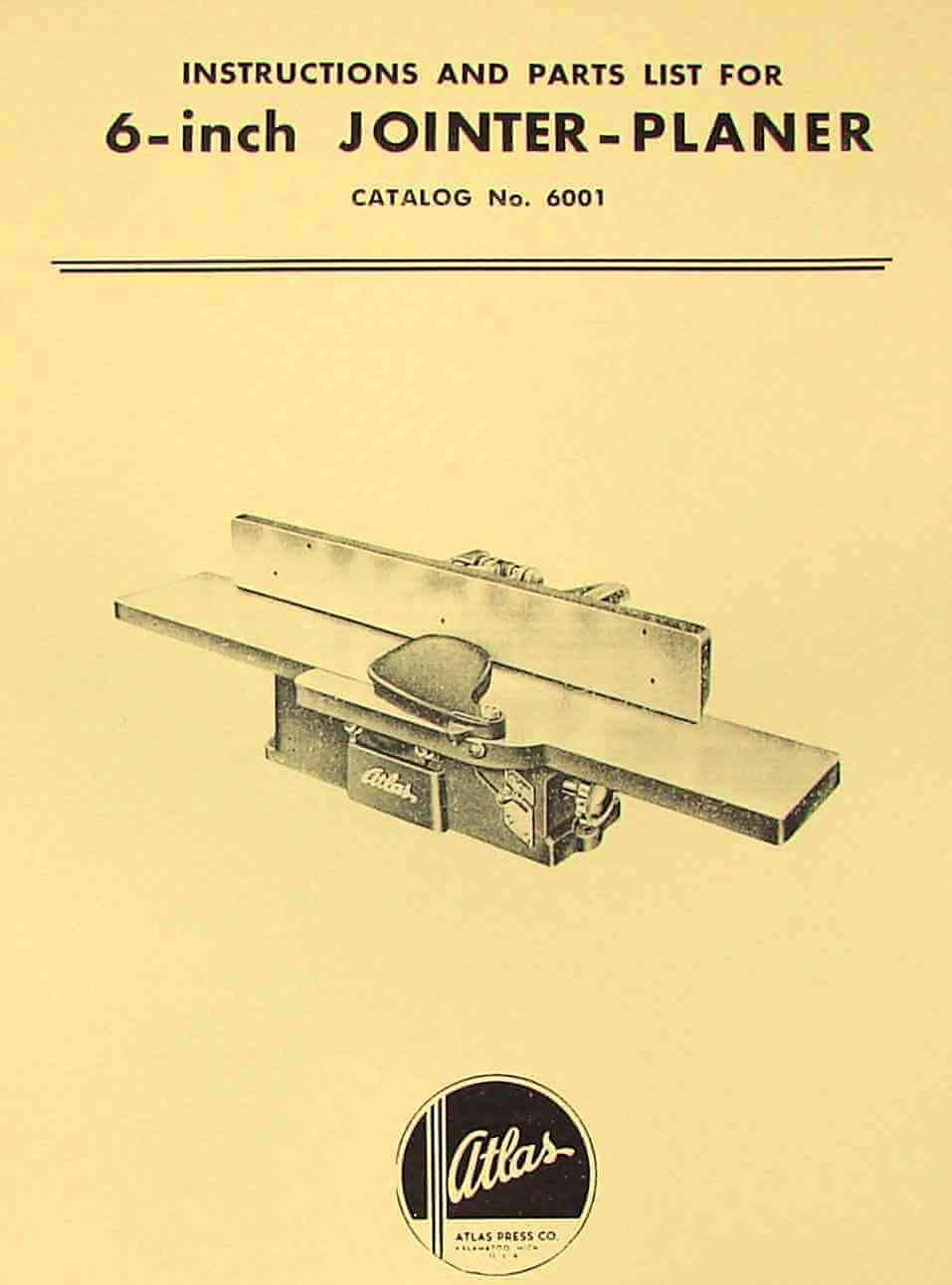 The Atlas 6-inch Jointer-Planer, Model 6001, is designed for precision woodworking tasks.