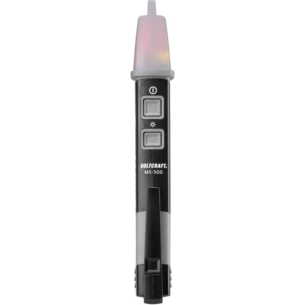 The VOLTCRAFT MS-500 is a non-contact voltage detector designed for safe and efficient detection of AC voltage in electrical installations. This device provides both optical and acoustic signals to indicate the presence of voltage, enhancing user safety during electrical work. It is rated for CAT IV 1000 V, making it suitable for measurements at the source of low-voltage installations, such as utility service connections and primary overcurrent protection devices.