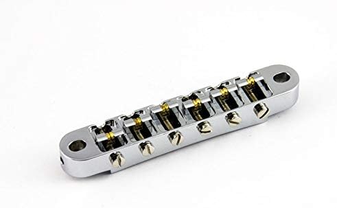 The ABM 2400c-RO Rollerbridge is a high-quality guitar bridge designed for precise string intonation and smooth string movement. Milled from solid brass and finished in chrome, this bridge offers durability and a classic aesthetic. Its roller saddles minimize friction, enhancing tuning stability and reducing string breakage.