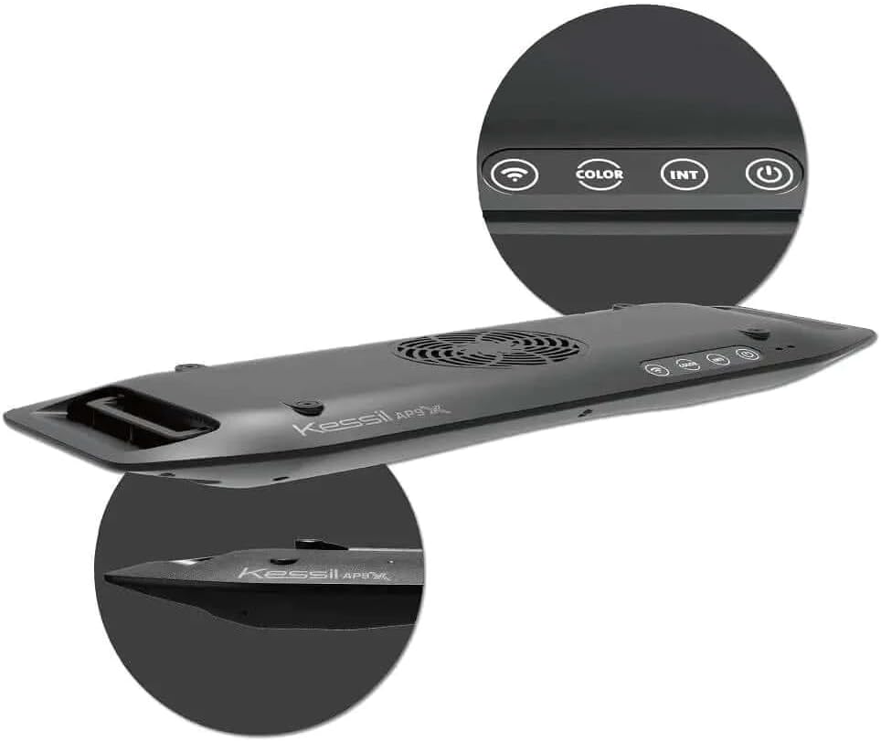 The Kessil AP9X can be controlled via its integrated buttons or through the Kessil WiFi app.