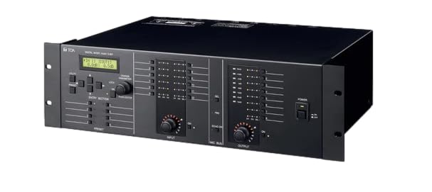 The TOA Electronics D-901 US Modular Digital Mixer is a versatile audio processing unit designed for a wide range of installed sound applications, including audio/visual systems and houses of worship. Its modular architecture supports up to twelve microphone/line inputs and eight line outputs, offering extensive flexibility for signal routing and processing. The D-901 integrates advanced audio tools such as automixing, feedback suppression, multi-band parametric filters, compressors, limiters, noise gates, crossovers, and delays to optimize sound quality and system performance.
