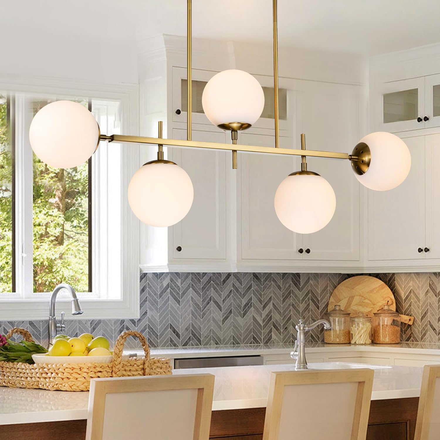 Figure 1.1: EDISLIVE Modern Milk Globe Chandelier (Gold-Frosted Bubble, 39.4in-5 Light)