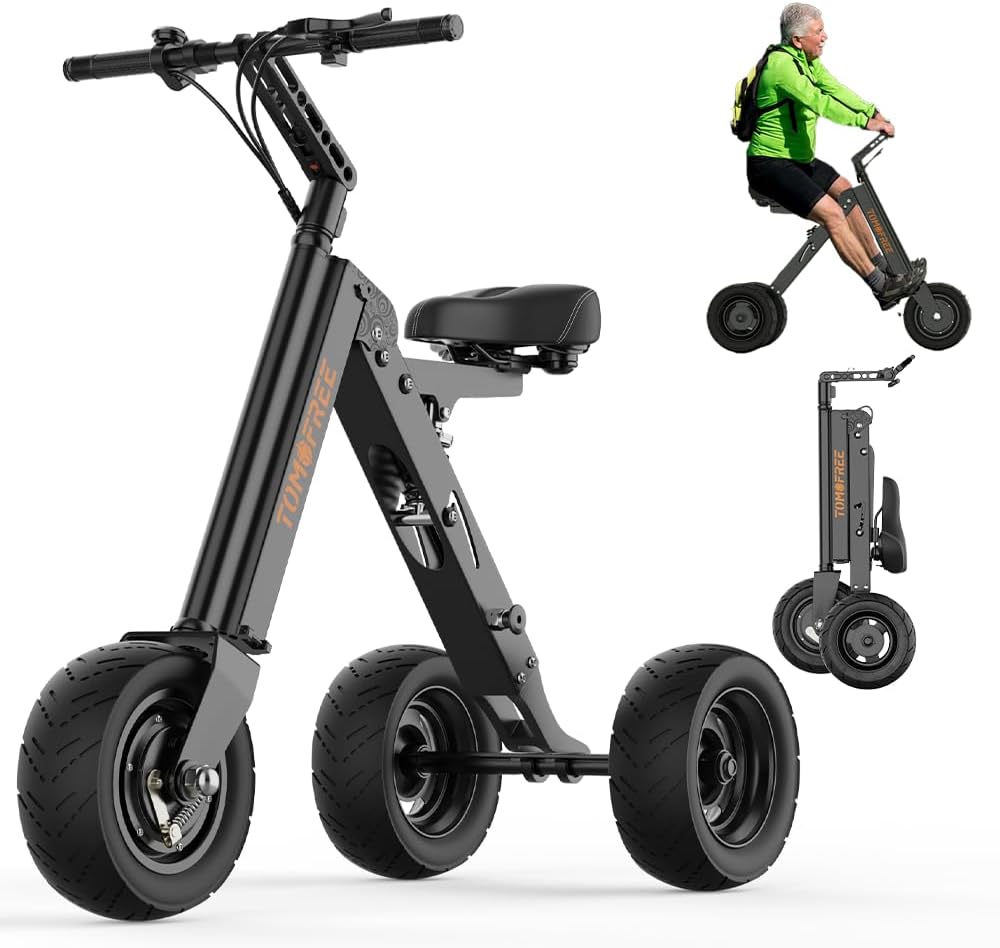 The Tomofree K7PRO is a lightweight, folding 3-wheel electric scooter designed for adults and seniors, offering stability and ease of use. It features a powerful 400W motor, a 36V 7.5Ah battery, and a reverse function for enhanced maneuverability.