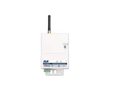 Rajah 1: The ELK C1M1 LTEV Dual Path Alarm Communicator. This image shows the compact design of the communicator, highlighting its various ports for power, data bus, and Ethernet connections, along with LED indicators for status monitoring.