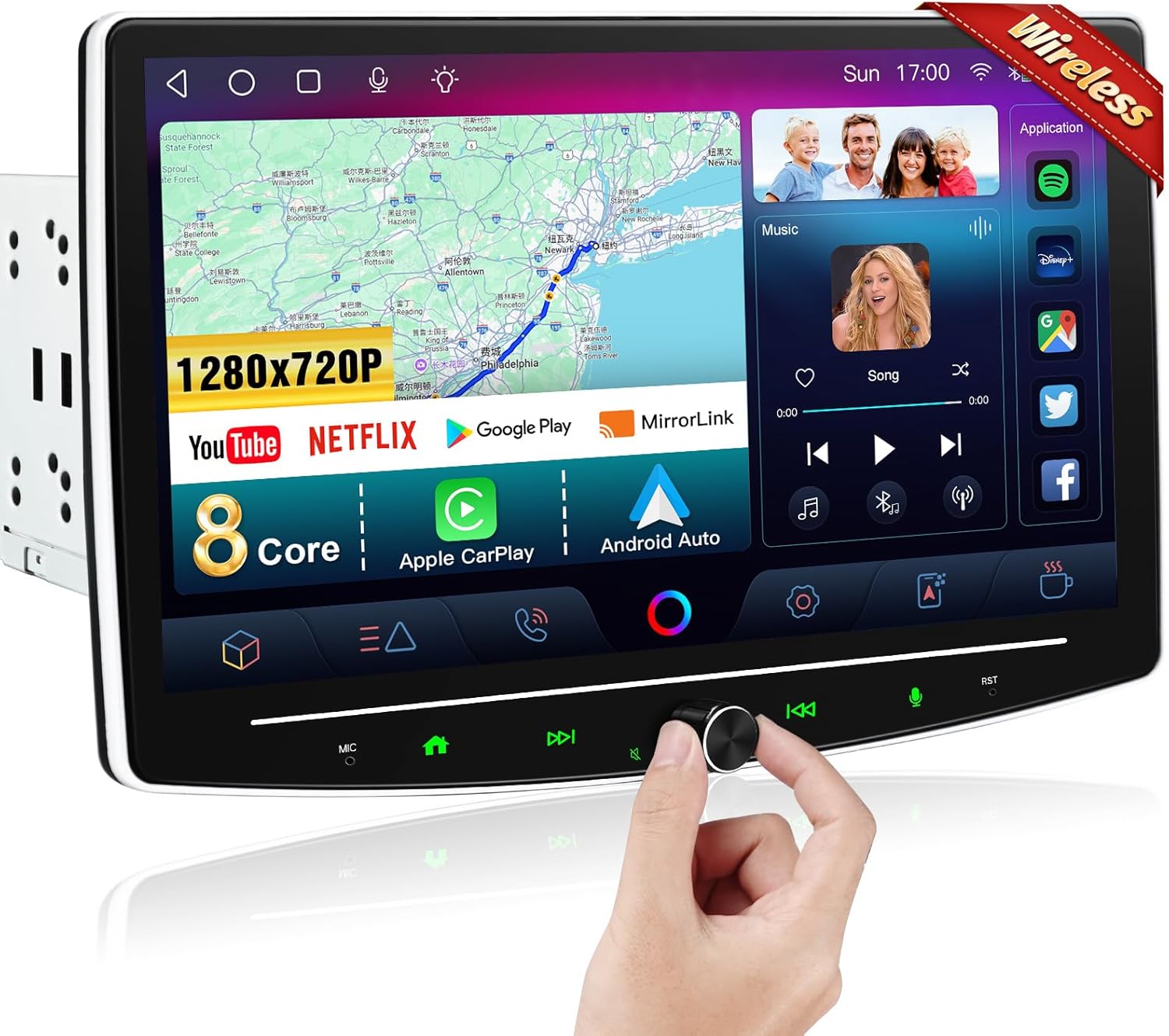 The stereo comes with preloaded dual GPS/WiFi navigation, supporting applications like Google Maps and Waze. It offers real-time traffic rerouting and estimated time of arrival (ETA) updates.