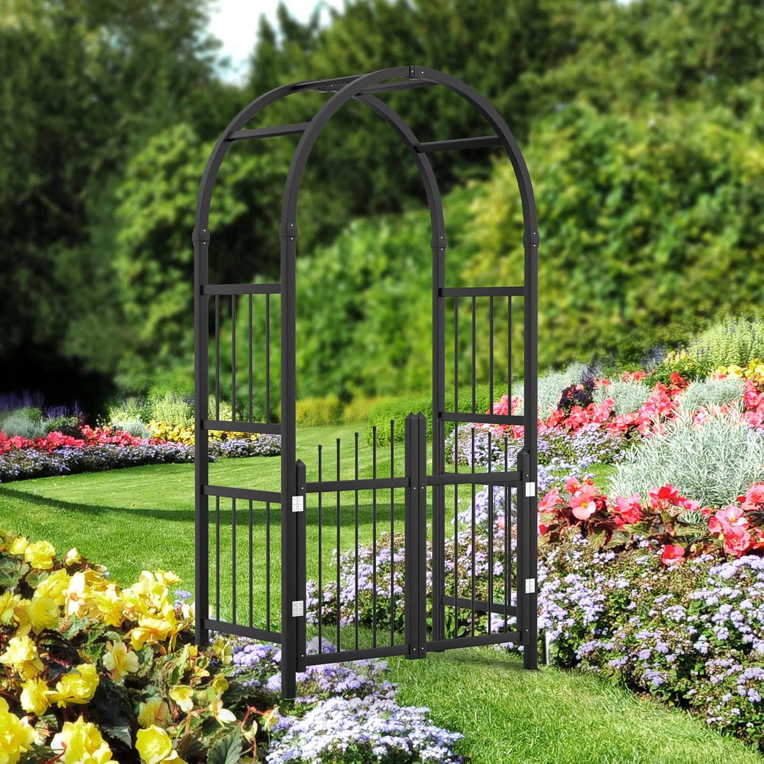 The VINGLI Garden Arbor with Gate is designed for versatile use in various outdoor settings:
