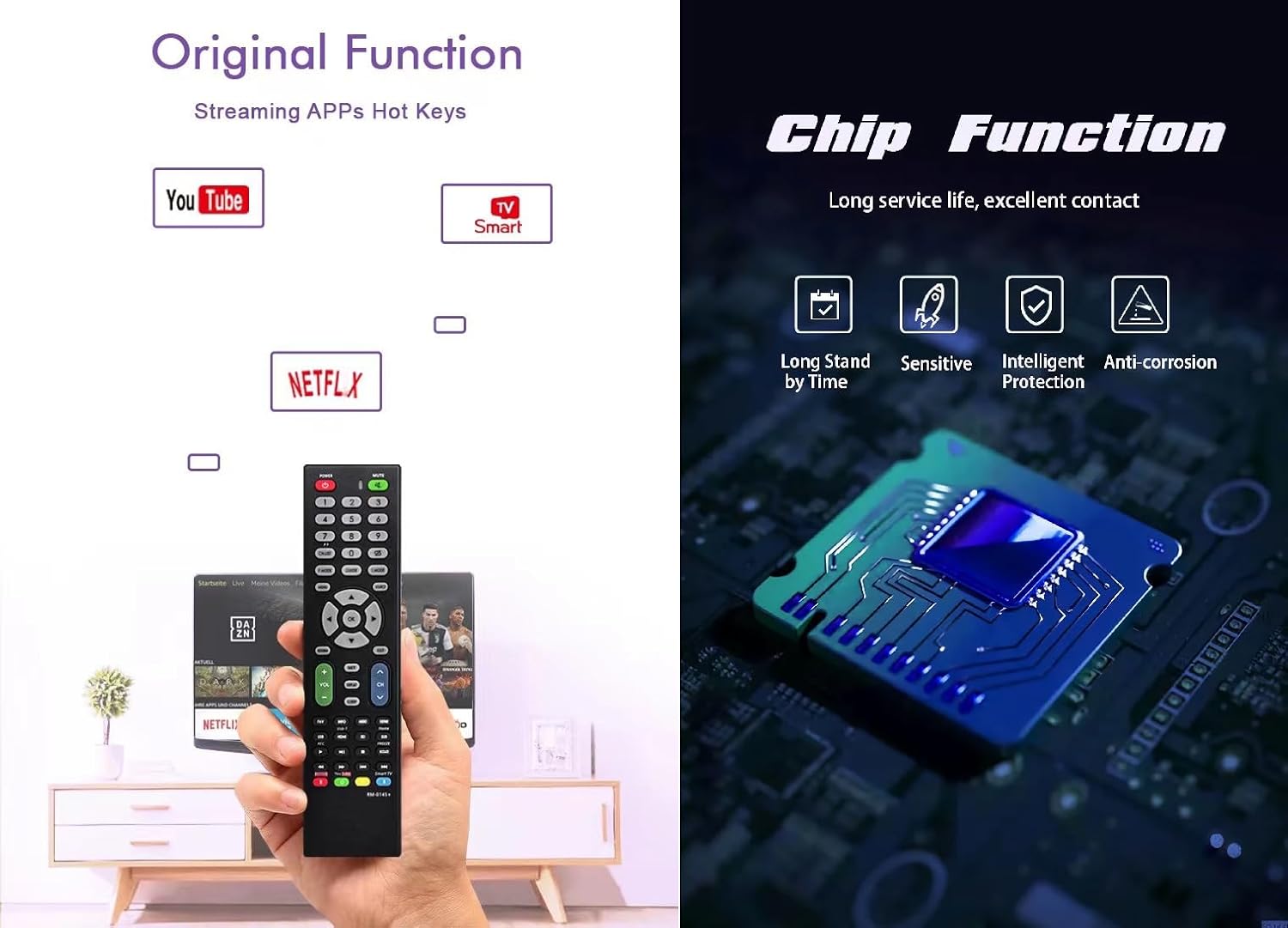 - - This remote is a universal replacement. While it supports many functions, some specific features of your original TV remote might not be replicated. Refer to your TV's manual for unique functions.